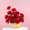 تعبيرٌ خالدٌ عن الرومانسية، "أدور" باقةٌ من الورود الحمراء الزاهية، مصممةٌ لأسر القلوب. كل زهرةٍ مُنسّقةٌ بعنايةٍ في سلةٍ خشبيةٍ مزيّنةٍ بأزهار الكينا الخضراء الفضية، لتُضفي لمسةً ساحرةً من الأناقة والحب.