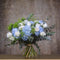 "الأناقة" هي باقة أنيقة ومتطورة تتميز بمزيج جميل من زهور الكوبية الزرقاء الفاتحة وأوراق الكينا الطازجة والكيوي الرقيق والورود البيضاء النقية والليبيديوم المذهل.