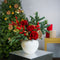 Celebrate the warmth of the season with Crimson Cheer, a luxurious Christmas arrangement featuring velvety red roses, festive red berries, winter greenery, and golden accents. Styled in a textured white vase, this elegant piece brings timeless holiday charm to any home or gifting occasion. Perfect as a centerpiece or a statement décor piece for Christmas gatherings.