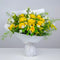 Brighten up any occasion with the vibrant Sunburst Bliss bouquet. This stunning arrangement features a delightful mix of yellow roses, white lisianthus, and green button chrysanthemums, elegantly wrapped in crisp white paper. Perfect for expressing joy and cheer.