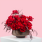Introducing "Rhapsody," a poetic expression of love in our Valentine's Day flower collection. This enchanting arrangement is crafted with passion, featuring a captivating blend of deep red roses and velvety burgundy eucalyptus, elegantly presented in a refined brown glass vase.